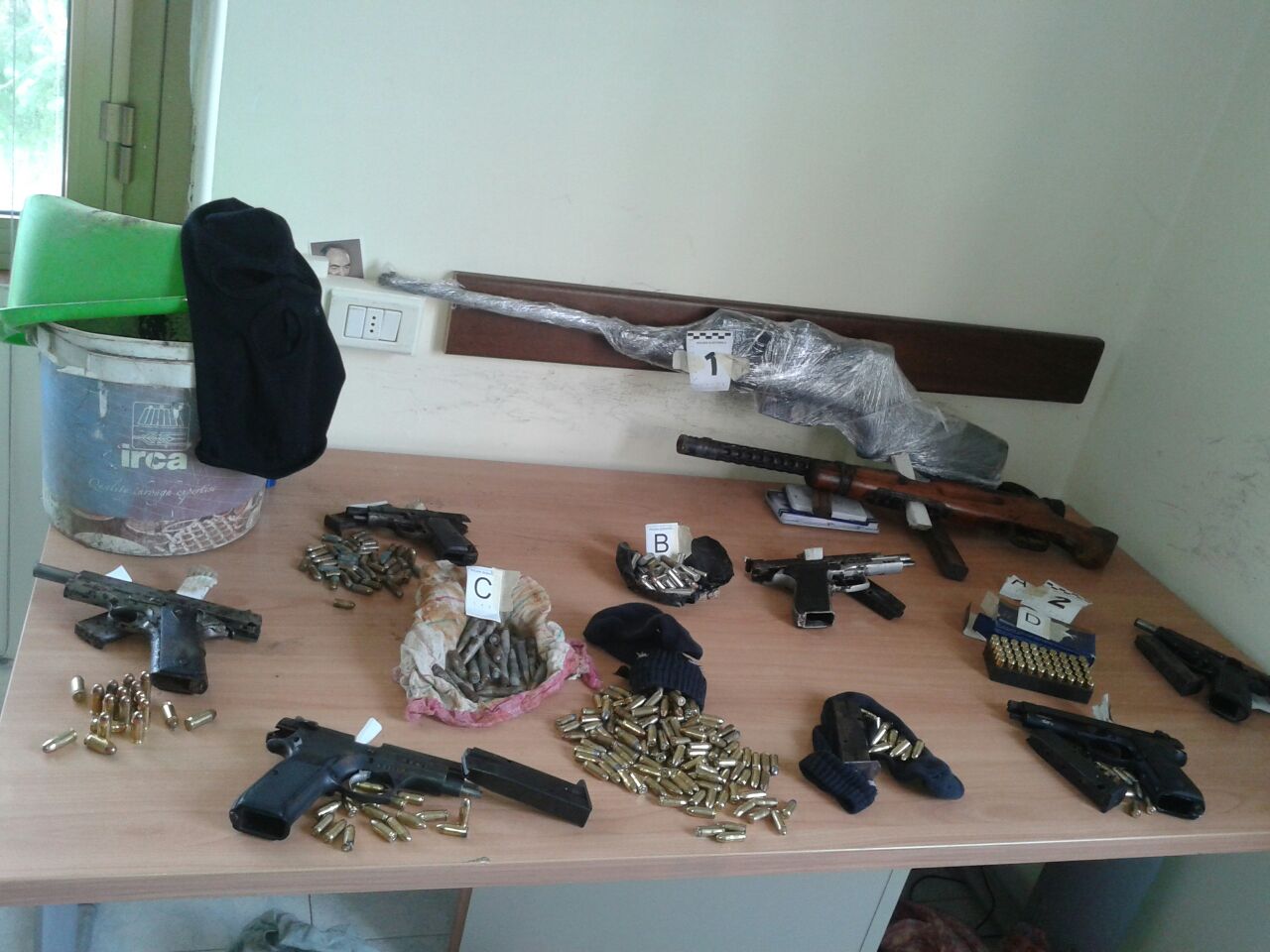 I poliziotti hanno infatti rinvenuto e sequestrato: una carabina Benteler Vore calibro 22, un vecchio fucile mitragliatore calibro 9 della Beretta, una pistola Beretta 34 calibro 9 corto, una pistola Colt 19R U.S. Army, una pistola Bernardelli ONE VB calibro 9 corto, una pistola calibro 9mm Luger, nonché numerosi caricatori e munizionamento di vario genere.