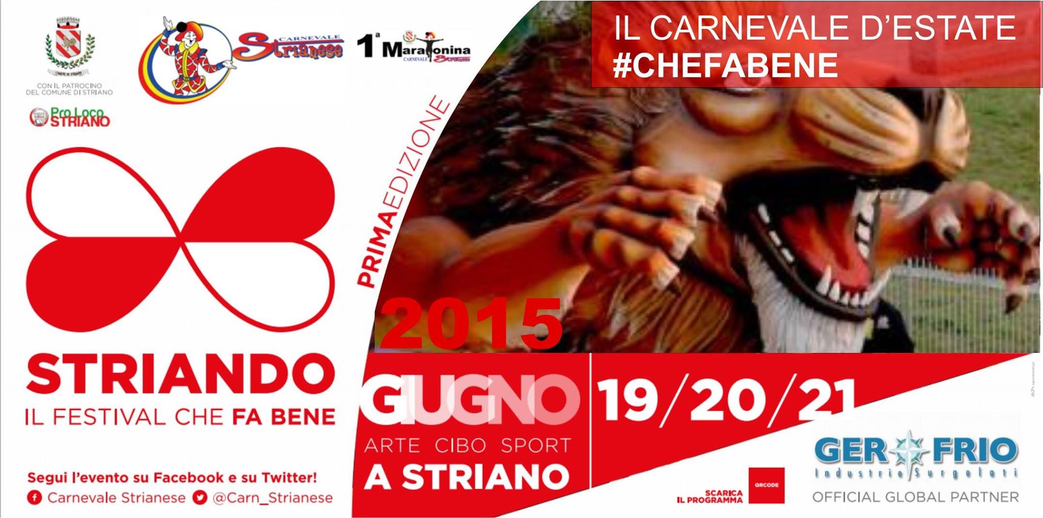 Domenica 21 giugno si parte dal mattino con l’animazione per bambini dalle ore 11. Nel pomeriggio poi dalle ore 17 ci sarà la sfilata della maschera ufficiale per il centro storico, la sfilata dei carri allegorici per il circuito chiuso e l’esibizione sportiva della Scuola Calcio Striano e del Crossfit. In seguito cederanno il posto ad una delle tante novità di quest’anno: la maratonina in notturna, che si svolgerà per le strade strianesi in un percorso di circa 10 kilometri. Seguirà l’esibizione di Zumba fitness e alle 21 un convegno su cibo, arte e sport. Interverranno Giulio Gerli, imprenditore strianese impegnato nel settore alimentare, nonché global partner della manifestazione, l’arch. Domenico Mascolo e Ugo Cordasco, infine il fisioterapista Salvatore Carmando che presenterà un libro su Diego Armando Maradona.