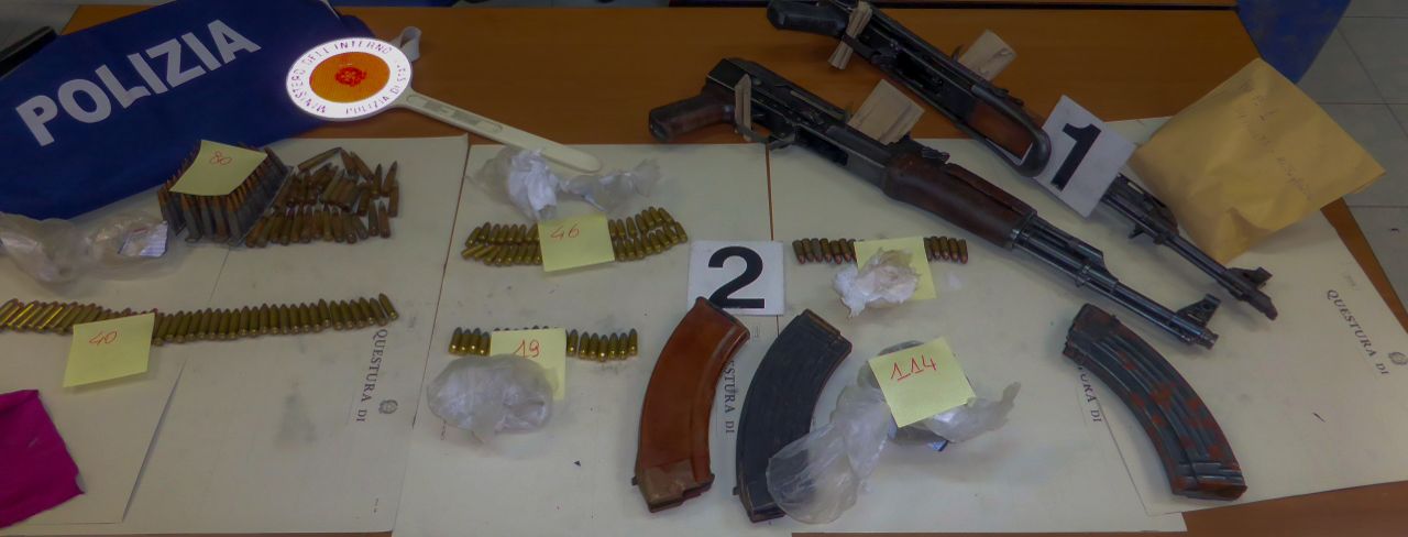Dopo aver visto il padre estrarre dal terreno un grosso bidone sono quindi intervenuti. E’ poi bastato verificare il contenuto di quest’ultimo per capire cosa stessero facendo padre e figlio in quell’appezzamento di terra. All’interno c’erano infatti due fucili mitragliatori, un Beretta MAB 38 ed un AK 47 detto anche Kalashnikov, due caricatori per quest’ultimo, nonché numerosi proiettili di vario calibro.