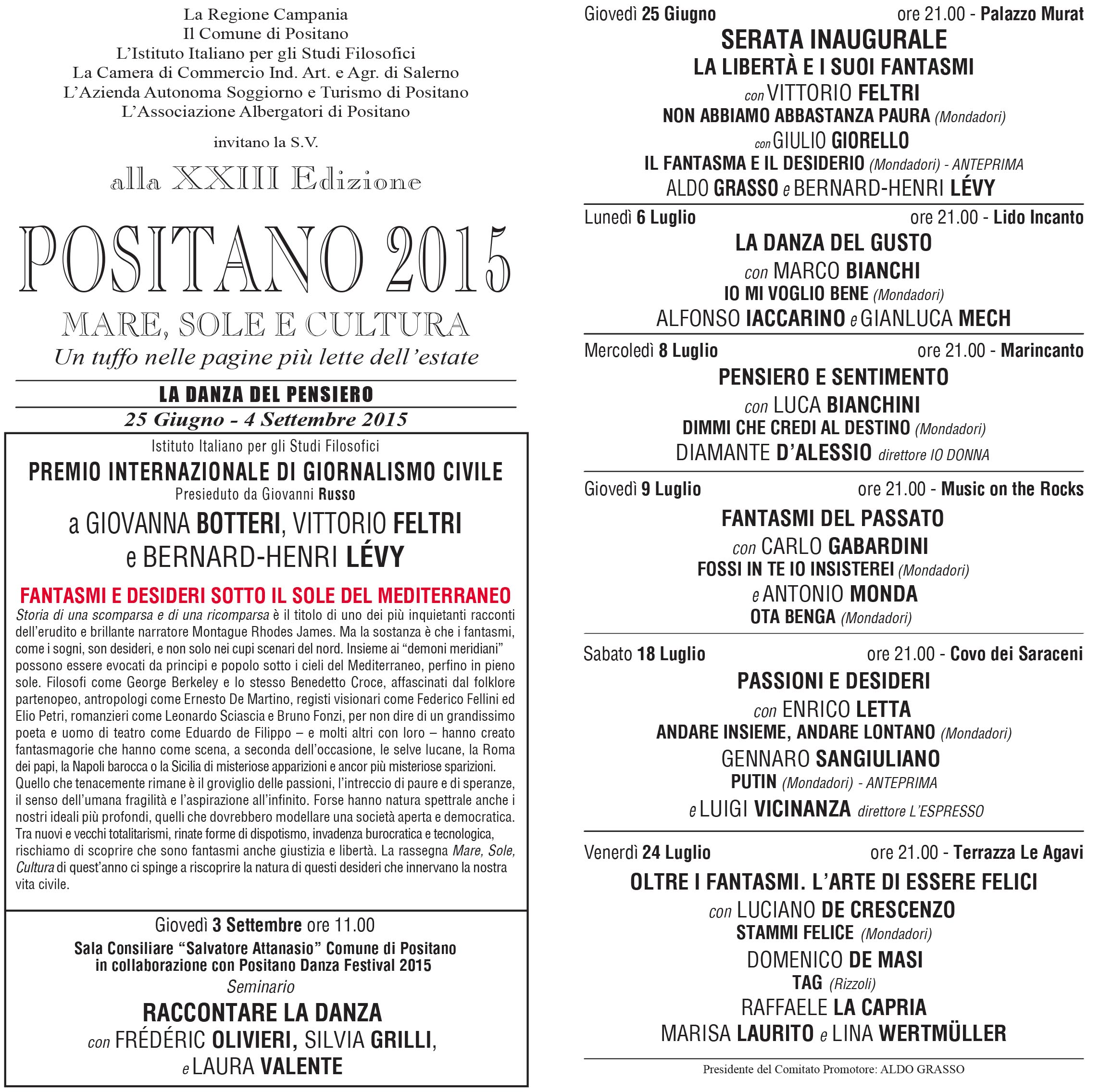 La rassegna rientra nel più ampio progetto “Positano premia la Danza-Capri Danza International- Positano Mare Sole e cultura” (piano di azione coesione delibera di giunta regionale n.45 del 9/2/2015 “itinerari”) promossa dal Comune di Positano.