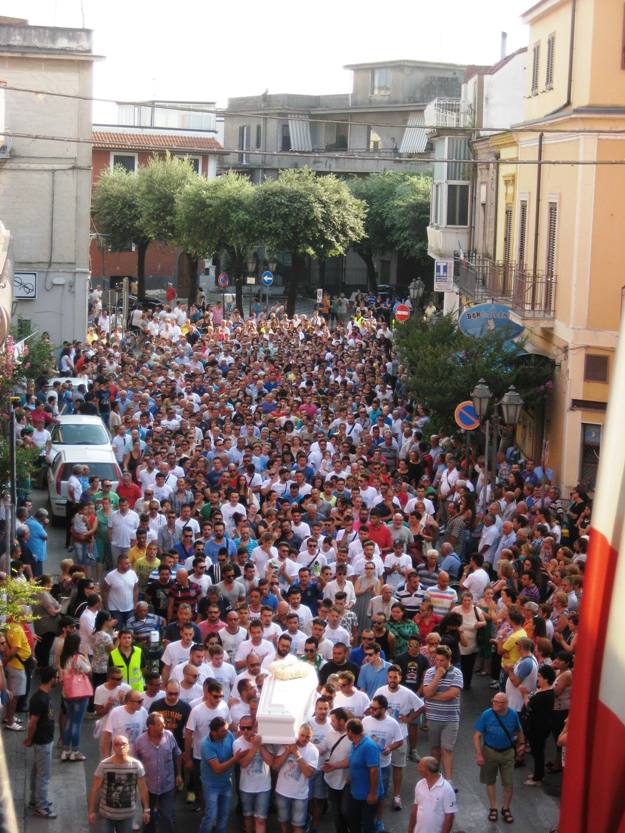 La salma, proveniente dall’Obitorio di Castellammare di Stabia è giunta a Striano alle ore 9.30 ed è stata accolta da una folla di circa mille persone che ha sostato incessantemente presso l’abitazione del giovane in Via Roberto
