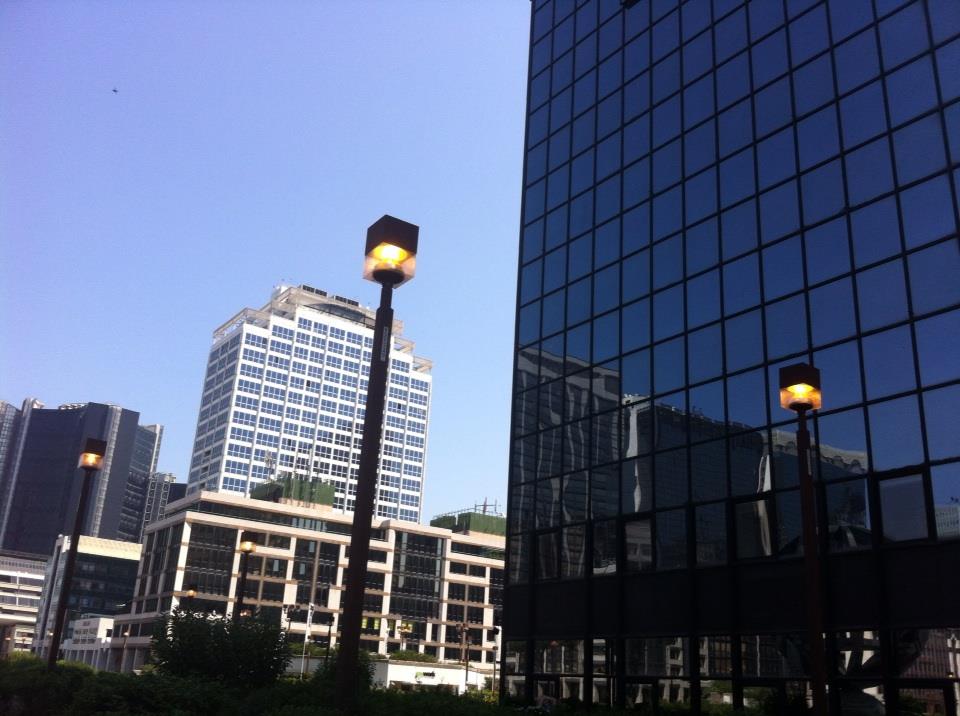 stamane al Centro Direzionale di Napoli dove per tutta la giornata e anche in pieno giorno sono rimasti accesi i pali per l’illuminazione.