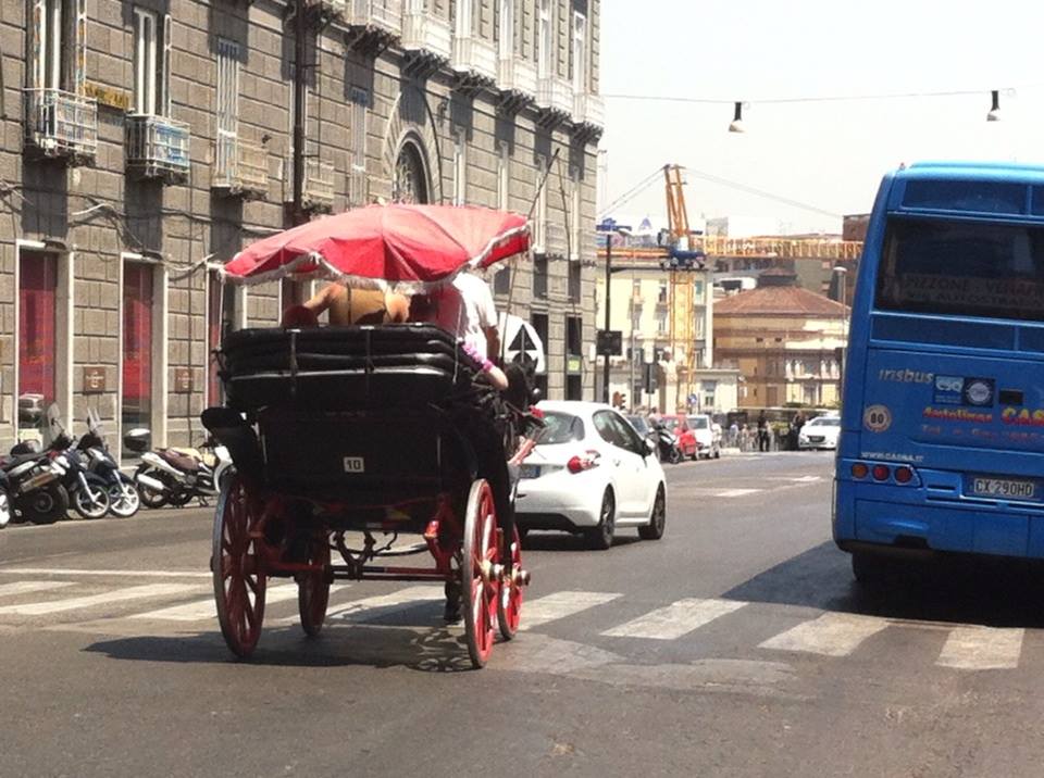 Il Sindaco di Napoli infatti aveva emanato una ordinanza per regolamentare la circolazione delle carrozzelle trainate dai cavalli. Purtroppo i titolari di questi “mezzi di trasporto per turisti” NON LE RISPETTANO mettendo a repentaglio la salute dei poveri animali costretti a fare grandi sforzi sotto al sole cocente. Per quanto ci riguarda chi fa circolare negli orari più caldi della giornata questi poveri cavalli facendoli stare male di fatto li tortura e dimostra di non avere umanità”.