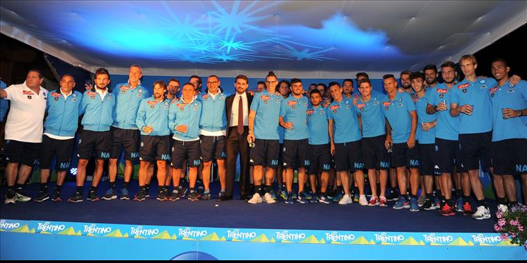 Dimaro, si è svolta la presentazione della squadra del Napoli 2015-2016, ad attendere gli azzurri milioni di tifosi con cori e canti. Presente anche il Presidente De Laurentiis, sul palco Nicola Lombardo che invita per primo il mister Maurizio Sarri che si è presentato ufficialmente ai tifosi, di seguito lo staff tecnico al completo tra cui il team manager Paolo De Matteis e il medico Alfonso De Nicola. Grande ovazione da parte dei tifosi quando sale la squadra sul palco, prende la parola Reina, Valdifiori e Maggio. A seguire alcune dichiarazioni di Higuain e l’ingresso di Marek Hamsik applaudito da tutti per il suo compleanno, queste le parole del capitano: “Grazie a tutti, sono molto contento di essere qui. Napoli è la mia seconda casa e di questo sono orgoglioso. Ai tifosi prometto tanta grinta e tanto sudore”. Si conclude la presentazione con i festeggiamenti per Hamsik e il saluto finale della squadra ai tifosi.