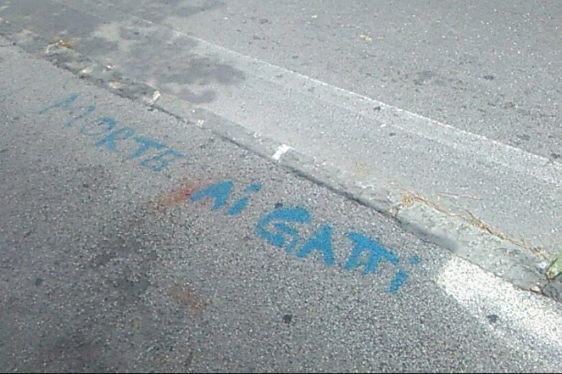 Abbiamo informato le autorità competenti e faremo rimuove i resti del povero animale oltre che a cancellare le scritte contro i nostri amici felini.