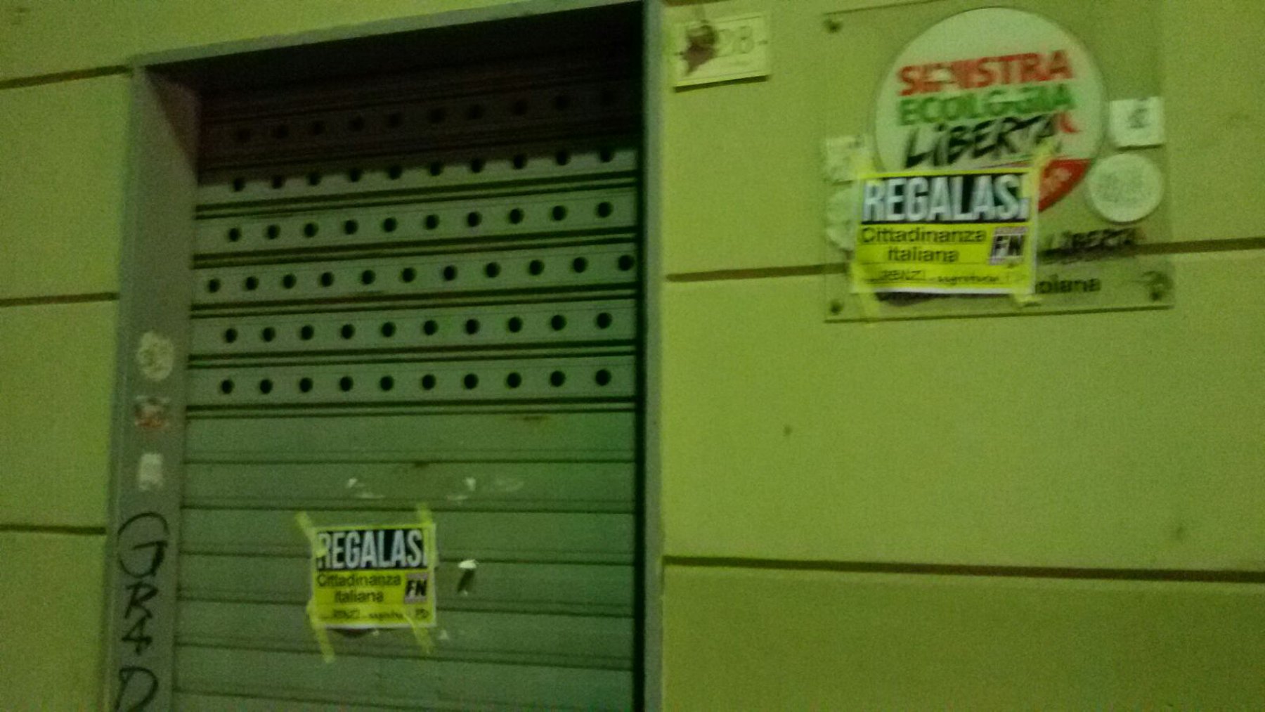 Questa notte i militanti di Forza Nuova hanno affisso sui portoni delle sedi cittadine del PD, SEL e CGIL alcuni cartelli