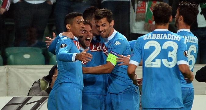 Il Napoli mette le ali con Gabbiadini ed El Kaddouri, nella prima frazione di gioco gli azzurri mettono a segno subito due reti la prima al 13′ minuto e la seconda al 22′ minuto. Gara chiusa nel primo tempo con il gol di Manolo Gabbiadini al 38′ minuto, che chiude il match e manda Ko il Midtjylland. Nel secondo tempo segna il 4-0 per il Napoli l’esterno Christian Maggio. Azzurri che dilagano al 77′ con Callejon che mette a segno il 5-0, partenopei qualificati ai sedicesimi di Europa League con due turni di anticipo.