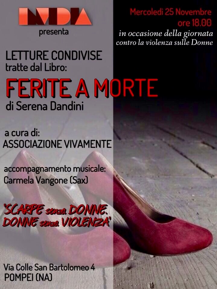 Nel corso dell’incontro, verranno letti alcuni passi tratti dal libro di Serena Dandini “Ferite a morte”, i cui testi attingono alla cronaca e alle indagini giornalistiche per dare voce alle donne che hanno perso la vita per mano di un marito, un compagno, un amante o un “ex”.