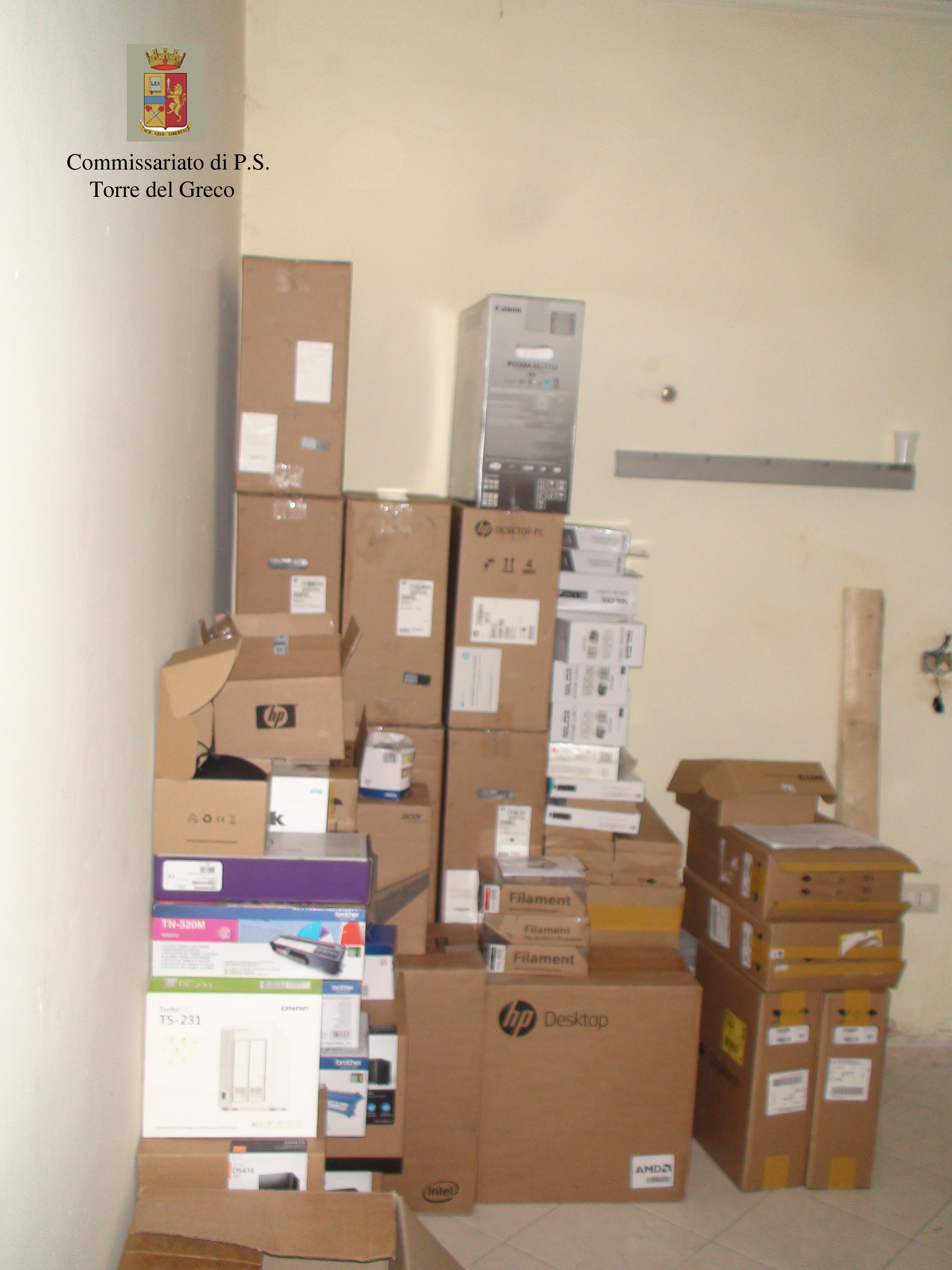 l’abitazione della donna in Via Nazionale, rinvenendo in una stanza dell’appartamento un ingente quantitativo di materiale informatico professionale e TV.