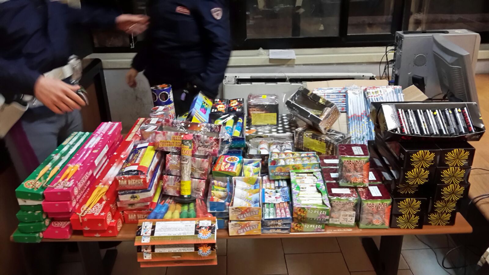 Ieri pomeriggio i poliziotti sono intervenuti in un negozio di telefonia di via Manzoni nel cui interno hanno rinvenuto e sequestrato 100 kg di materiale pirotecnico di cui 28 kg di massa attiva.