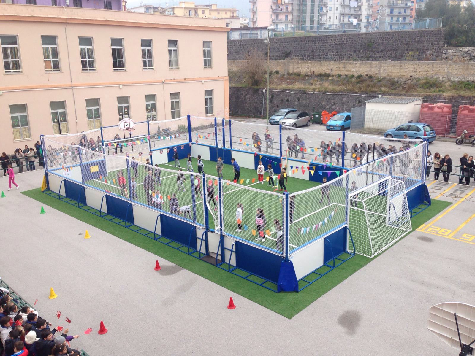 Il campo resterà a disposizione degli alunni della Sauro-Morelli ma, come ha spiegato anche l’assessore Guarino, all’occorrenza potrà anche essere smontato e rimontato in altre parti della città in occasione di eventi promozionali.