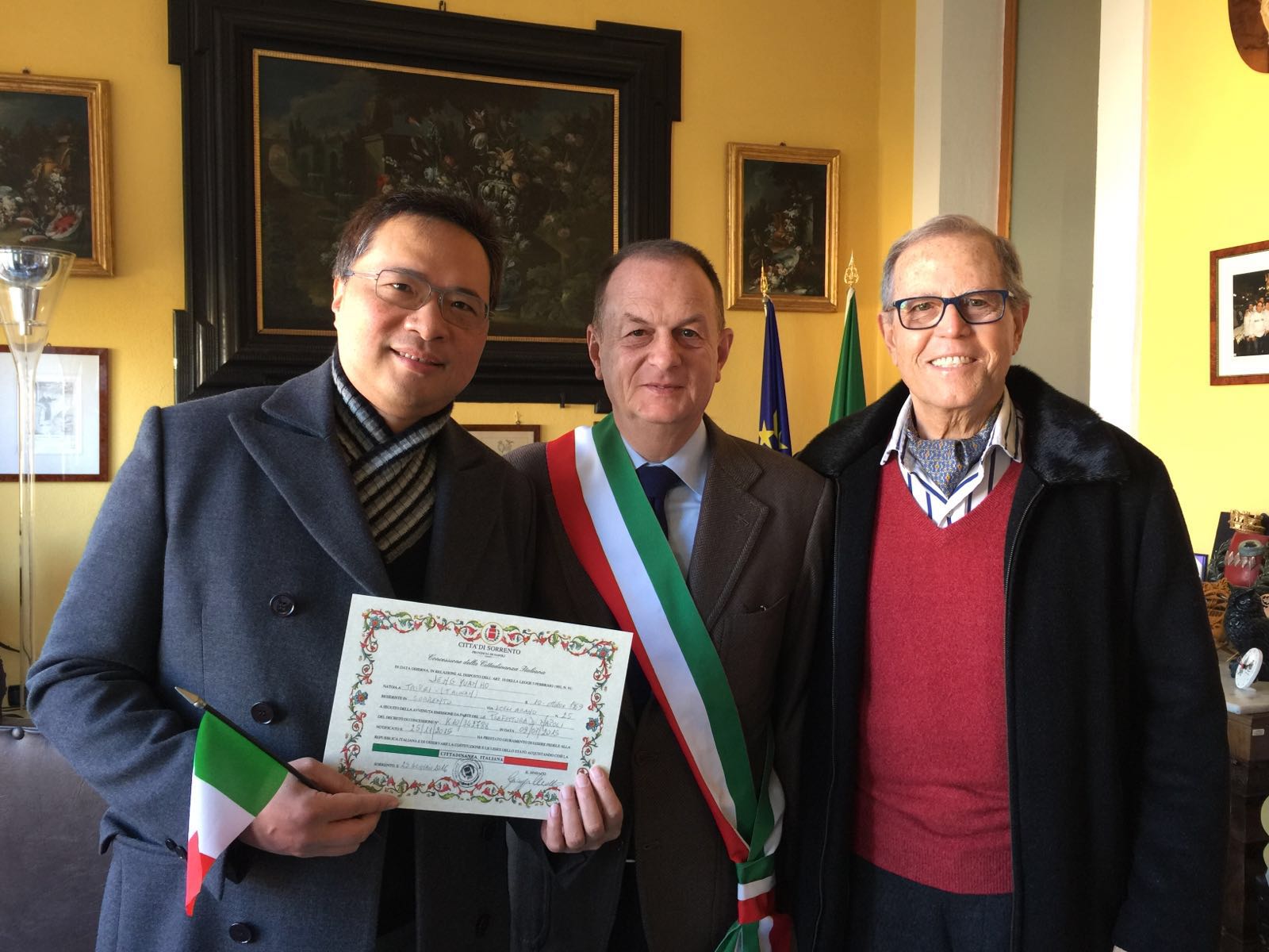 Il sindaco di Sorrento, Giuseppe Cuomo, ha conferito la cittadinanza italiana a Yuan-Ho Jung Cavallaro, originario di Taiwan, figlio di un italo-americano, Frank Cavallaro, da tempo residente nella città del Tasso.