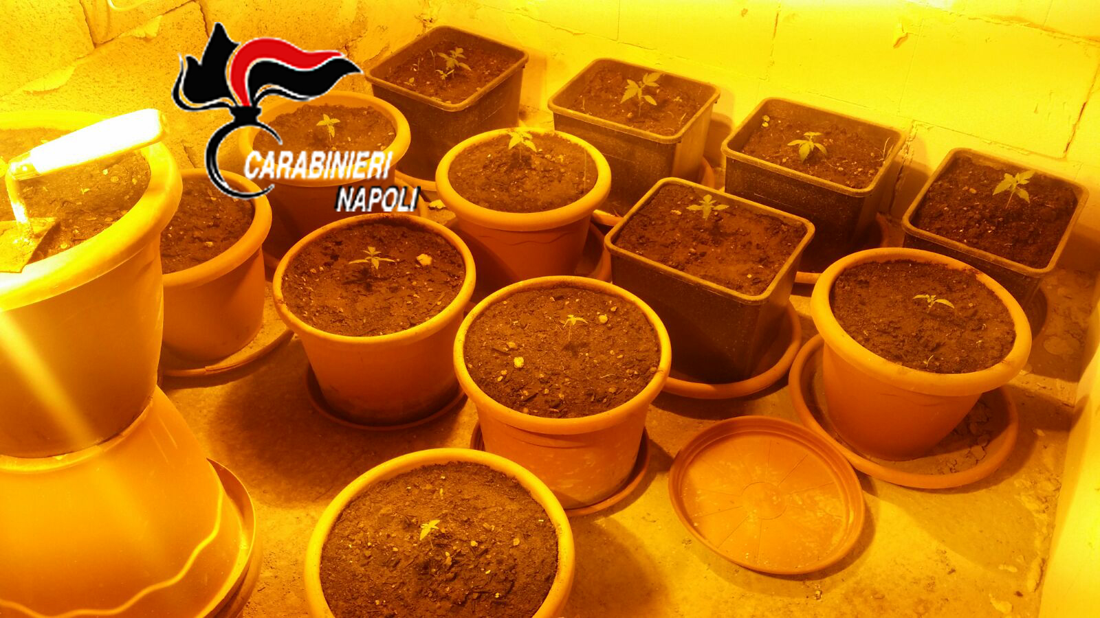 Natale Pasquale, 54enne, di Caivano e già noto alle forze dell’ordine, sul solaio della sua abitazione aveva allestito una serra ove erano coltivate 12 piante di cannabis indica (altezza di circa 40 cm). Sul posto sono state rinvenute e sequestrate 2 lampade da 600 watt e alcuni pannelli rifrangenti ed è stato accertato che l’impianto per simulare i ritmi giorno/notte con le lampade era collegato alla rete pubblica. I tecnici enel fatti intervenire sul posto quantificano consumi non registrati per 7.000 euro.