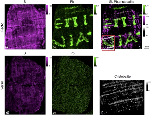 I ricercatori hanno impiegato diversi metodi di diagnostica per immagini per analizzare i reperti, è stato usato un potente fascio di luce estremamente brillante “Grazie alla potenza del fascio le analisi sono state molto veloci – un decimo di secondo a pixel – il che ci ha permesso di acquisire numerosi dati molto rapidamente e su tutti i campioni”, prosegue il ricercatore dell’Imm-Cnr. “Abbiamo quindi la certezza della correlazione tra informazione chimica e la traccia visibile delle lettere”.