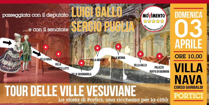 La cittadinanza è invitata a partecipare al Tour delle Ville Vesuviane come descritto nella locandina