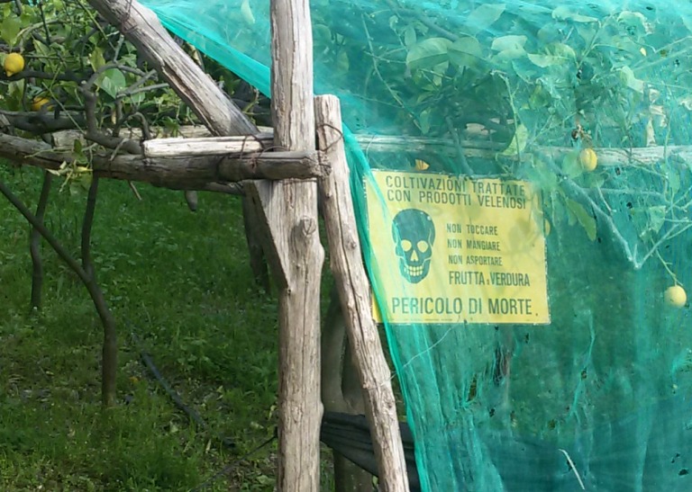 Qualcosa non funziona nella terra dei limoni, patrimonio Unesco dal 1997 anche perché “…la sua area rurale dimostra la grande capacità dei suoi abitanti di utilizzare il terreno, dai pendii più bassi ai pascoli più alti, adattandoli alle diverse esigenze culturali…”, se qualcuno ha la necessità di esporre in un limoneto un cartello inquietante, con tanto di teschio, con la scritta “Coltivazioni trattate con prodotti velenosi … pericolo di morte”.