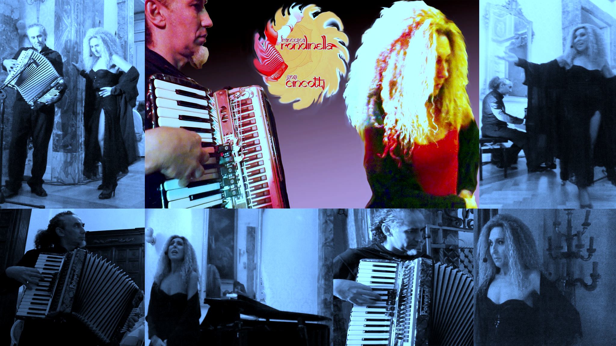 Un duo particolarmente passionale e creativo quello tra Francesca Rondinella, cantante e figlia d’arte con una carriera nella musica napoletana dal classico al contemporaneo e Giosi Cincotti jazzista, compositore, pianista, tastierista, fisarmonicista e riarrangiatore in chiave etno-jazz dei classici napoletani, nonché dei brani per la colonna sonora dell’ultimo film di John Turturro “Gigolò per caso”. Entrambi apprezzati in ambiti nazionali e internazionali, si incontrano nel 2012 con il concerto Amour Amer, e a seguire con La frenesia dell’Angelo, approdando ad originali progetti artistici come l’apprezzato concerto T’Angheria, poesia cantata e canzone di poesia, struggente, ironica, passionale, quasi surreale. O ancora il Recital Medithéà, la via della parola che porta al canto e il concerto”Tu ca nun chiagne” basato sulla tradizione classica napoletana.