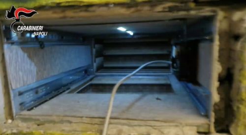Il materiale era chiuso in una cassaforte portatile e questa nascosta nella intercapedine ricavata abusivamente tra due muri di uno scantinato condominiale. Vi si accedeva attraverso una botola a scomparsa telecomandata.