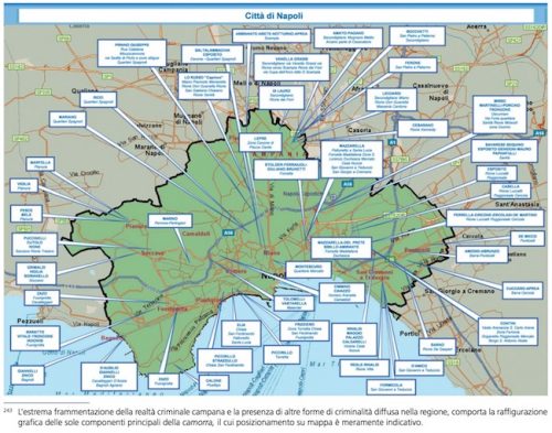 Ogni gruppo camorristico è in equilibrio instabile con l’altro ma tutti hanno in comune l’agire in “territori caratterizzati da una densità abitativa molto alta, dove si concentrano povertà, emarginazione, assenza di nuclei familiari coesi da un’integrità di valori e tassi elevati di evasione scolastica.