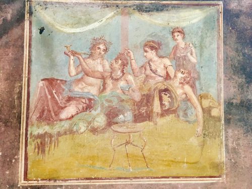 Il nome origina dal bacio “casto” che due amanti si scambiano in uno dei quadretti di banchetto che decorano il triclinio della casa, con annesso panificio.