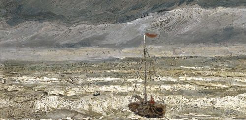 Scheveningen è una località frequentata dai paesaggisti olandesi, resa celebre dal monumentale Panorama cilindrico eseguito da Mesdag nel 1881 e noto a Van Gogh che nella sua tela cattura con drammatica sintesi l’atmosfera tesa che prelude lo scoppio di una tempesta, con le onde increspate del mare e le raffiche di vento che spazzano vorticosamente la spiaggia.
