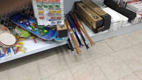 Uno dei tanti episodi che vede balordi armati con mazze da baseball. Dove reperire i micidiali “bastoni”? In qualsiasi bazar cinese. Come documenta la foto scattata dallo scrivente in un punto vendita orientale sito a “Bagnoli” per pochi euro è possibile acquistare una mazza da baseball in legno o in metallo, del diametro e del colore preferito senza che all’acquirente venga chiesto alcun che.