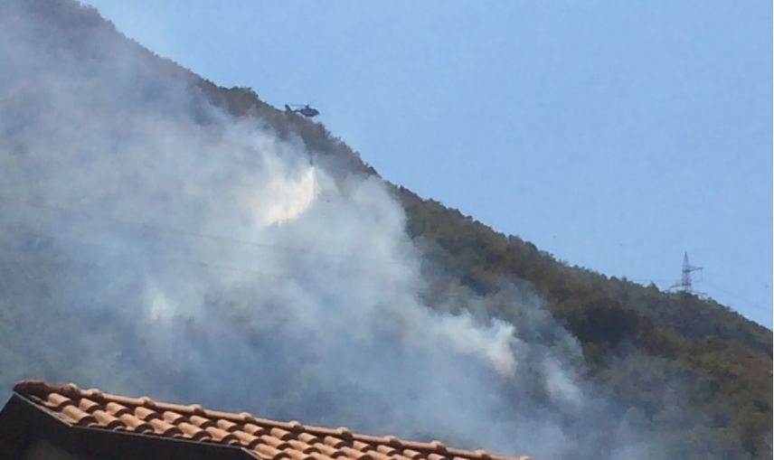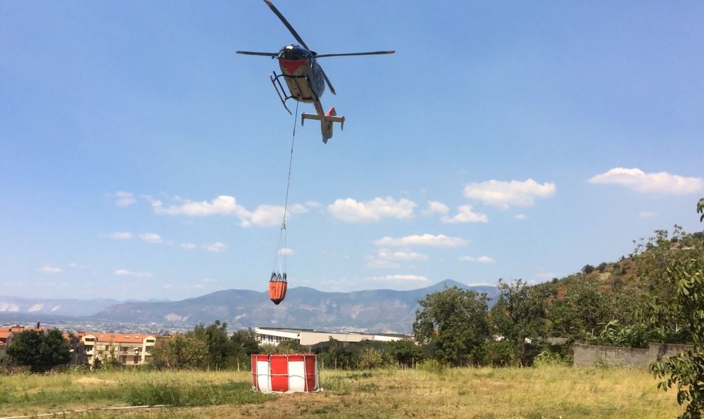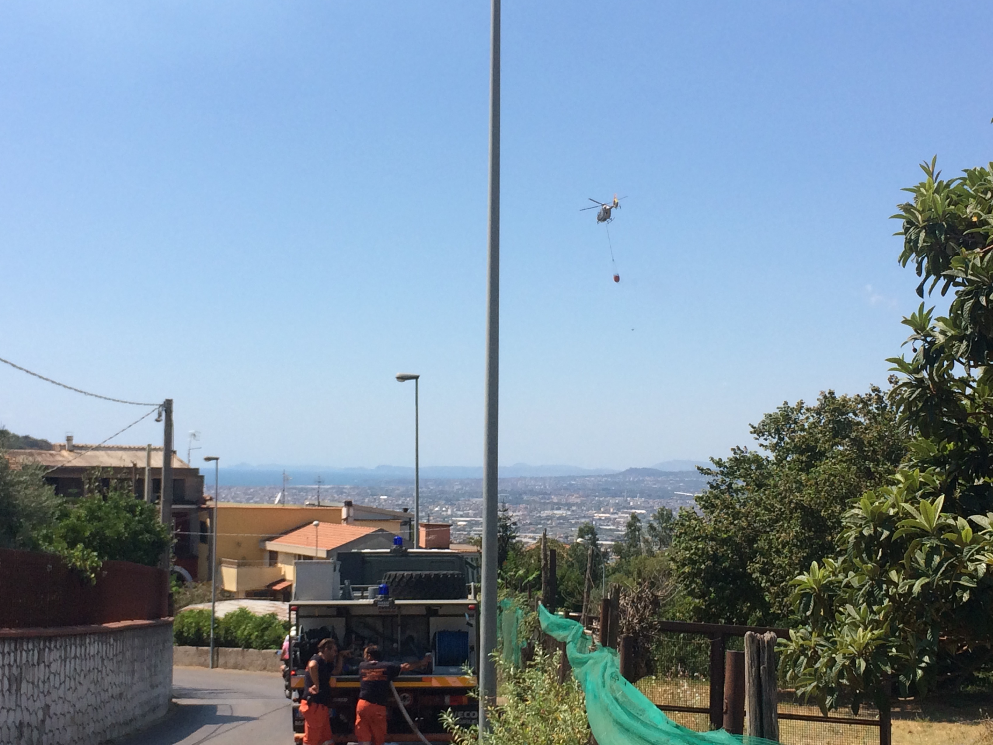 L’elicottero del servizio regionale si è rifornito in una piscina da campo allestita su in fondo messo a disposizione da un privato. La piscina viene riempita di continuo dai mezzi dei volontari. Una soluzione, questa adottata per fare fronte al fuoco, praticamente obbligata dato che via terra è quasi impossibile raggiungere il costone interessato dalle fiamme.