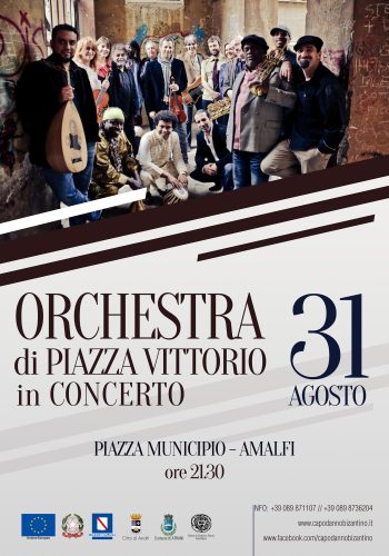 L‘internazionalità intrecciata alla storia della Repubblica Marinara contaminerà anche gli eventi collaterali del Capodanno Bizantino in programma il primo settembre tra Amalfi ed Atrani. Due gli spettacoli che, come ormai è consuetudine, apriranno e chiuderanno la kermesse rievocativa e vedranno protagonisti l’Orchestra di Piazza Vittorio (31 agosto) ed il musical Amalfi 839 A.D., rivisitato appositamente per l’occasione.