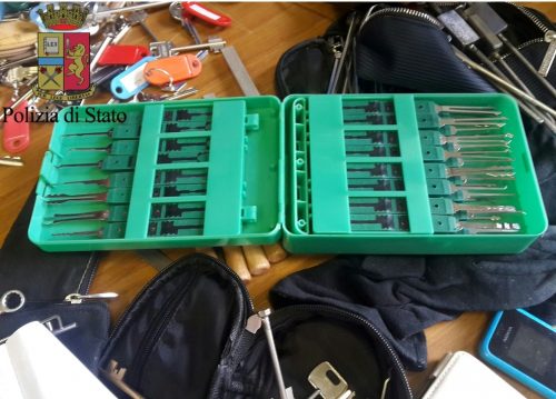 Tutto il materiale utilizzato dalla banda di ladri per riprodurre le chiavi, nonché le chiavi, gli arnesi, chiavini e chiavistelli sono stati sequestrati stamane nel corso dell’esecuzione dei provvedimenti.