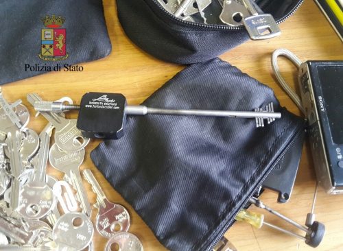 Il 10 maggio era stato eseguito dalla Squadra Mobile nel corso delle indagini un sequestro a carico di Imperatore e Rubino, avente ad oggetto dei guanti neri, delle chiavi per aprire serrature blindate, una torcia, i telefoni cellulari in uso ad entrambi, uno smartphone contenente numerose foto di serrature e chiavi, alcuni video ritraenti persone impiegate ad aprire portoni di ingresso di vari fabbricati, nonché foto di chiavi blindate.