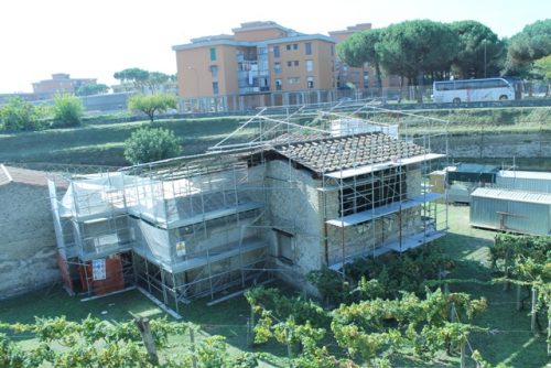 I lavori dovrebbero concludersi entro fine 2018 e consistono nella revisione completa di tutte le coperture della Villa con la sostituzione totale o parziale di quelle danneggiate, e la messa in campo di tutti gli interventi correttivi necessari all’idoneo smaltimento delle acque meteoriche (quali l’estensione dell’aggetto delle falde e l’allontanamento delle acque raccolte dalle strutture archeologiche).