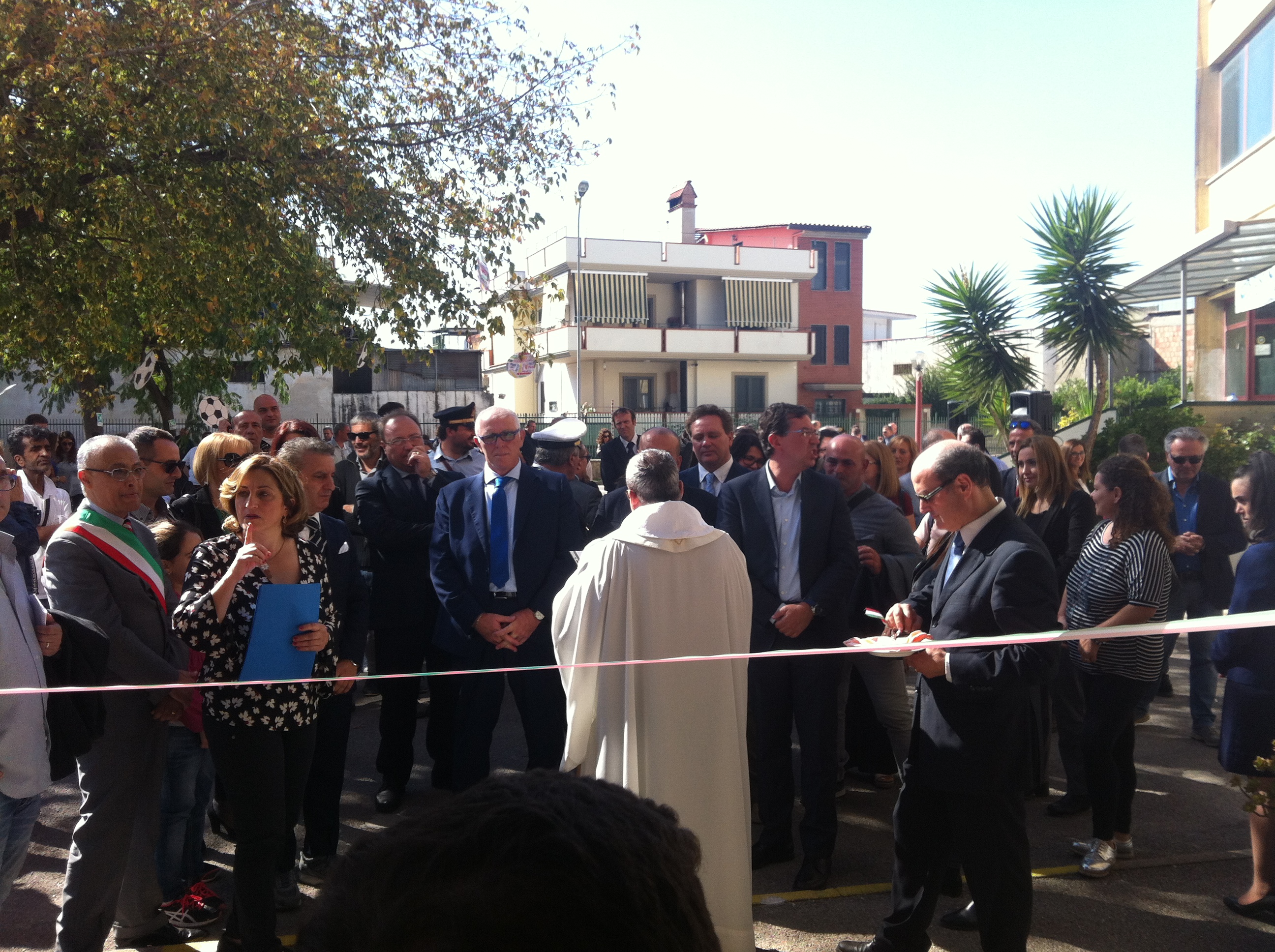 E’ stata inaugurata stamattina, alle ore 11.00, con il taglio del nastro delle autorità cittadine, metropolitane e regionali, e con la benedizione del parroco di Striano padre Michele Fusco, la nuova palestra della scuola media “Antonio D’Avino” di via Mulitiello a Striano.