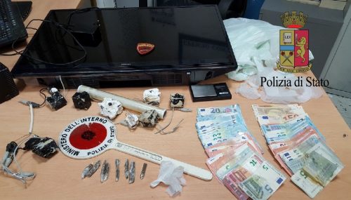 Gli agenti hanno sequestrato due dosi di cocaina rinvenute vicino al water, all’interno del quale gli spacciatori avevano tentato di gettarle, mentre altre otto dosi di hashish sono state recuperate da un cestino della spazzatura. Il sistema di videosorveglianza è stato smontato e sequestrato unitamente alla droga ed a 1.380 euro rinvenuti in tasca al 19enne. I due sono stati condotti a Poggioreale.