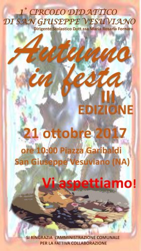 Ritorna in piazza Garibaldi la manifestazione “Autunno in festa”, promossa dal Primo Circolo Didattico in collaborazione con il Comune di San Giuseppe Vesuviano e giunta, quest’anno, alla terza edizione.