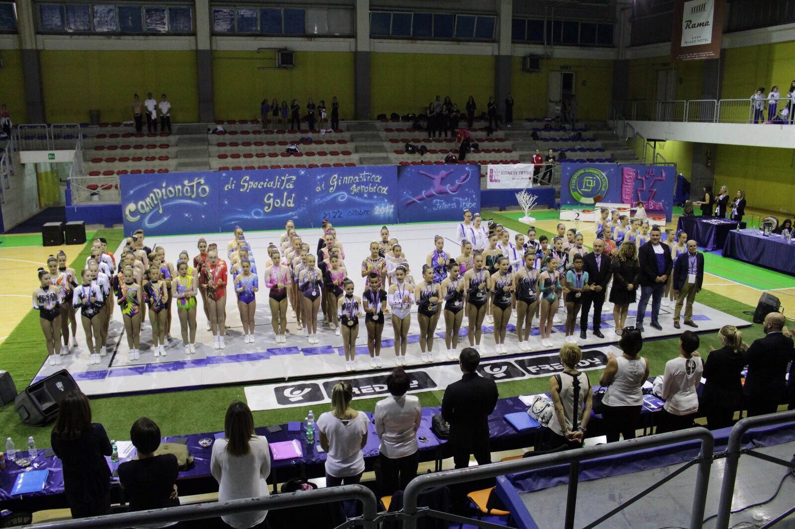 Al Palazzetto dello Sport di Casalnuovo si sono svolti i Campionati Nazionali di Specialità Gold di Ginnastica Aerobica, organizzati dalla società Fitness Trybe Pomigliano d’Arco con Graziano e Serena Piccolo in cabina di regia.