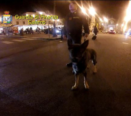Le Fiamme Gialle di Vallo della Lucania, con l’ausilio delle unità cinofile del Gruppo di
