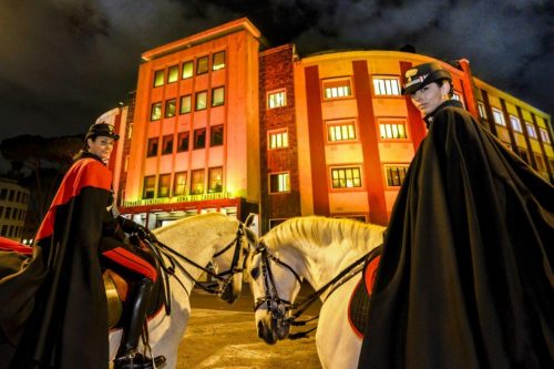 Luci di colore arancione illuminano la facciata dell’edificio del Comando Generale dell’Arma dei Carabinieri, del Comando Provinciale Carabinieri di Venezia e delle Compagnie di Mestre, San Donà di Piave e Portogruaro.
