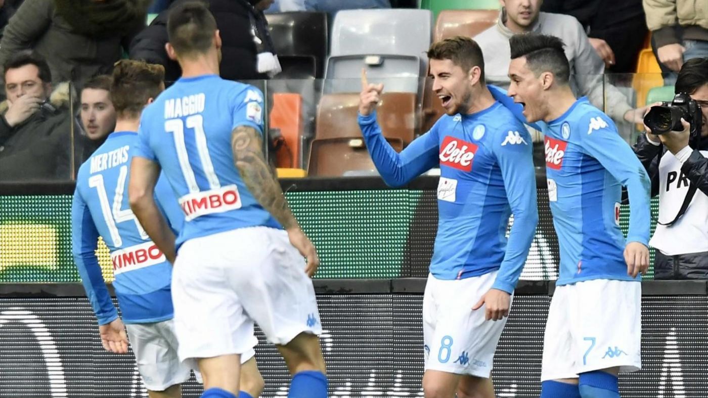 Sulla panchina friulana il debutto di Massimo Oddo, in campo una squadra, quella bianconera, ben disposta e attenta a spuntare le punte del magico tridente. Al 33′ del primo tempo il gol della vittoria: rigore per fallo su Maggio ad opera di Angella. Il portierone dell’udinese, Scuffet para il tiro di Jorginho ma l’azzurro insacca sulla respinta non proprio da manuale.