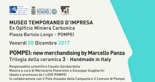Venerdì 8 dicembre, alle ore 13:00, presso il “Museo Temporaneo d’Impresa” in piazza Bartolo Longo a Pompei, verrà inaugurata la mostra “Pompei: new merchandising by Marcello Panza” curata da Mariacarla Panariello e Giuseppe Scagliarini e con la responsabilità scientifica di Claudio Gambardella. La mostra – dedicata a Marcello Panza, uno dei designer campani più affermati in Italia e all’estero e fondatore di Studio Minimo – rientra nella TRILOGIA DELLA CERAMICA 3, ideata e realizzata da I LOVE POMPEI in collaborazione con il Polo Museale della Campania, diretto da Anna Imponente, e ora anche con l’Amm.ne Comunale della città di Pompei, guidata da Pietro Amitrano.