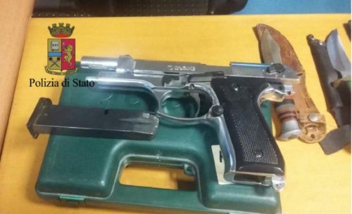All’indomani del Capodanno, infatti, gli agenti del Commissariato di Polizia Palazzo di Giustizia, benché il video fosse stato rimosso, hanno raggiunto l’abitazione del 40enne scoprendo così, che era in possesso di una pistola Smith&Wesson calibro 38 special, completa di 6 cartucce nel tamburo, con matricola abrasa, una pistola Beretta calibro 6.35 completa di caricatore e 6 cartucce di cui una in canna, la cui matricola risultava illeggibile in quanto l’arma era stata verniciata, una penna pistola calibro 22, con proiettile in camera da scoppio, due pistole di marca Bruni, perfette riproduzioni, prive del tappo rosso, una pistola giocattolo, priva del tappo rosso, 7 coltelli del tipo: a serramanico, a scatto, a lama fissa ed a doppia lama, un pugnale, due katana della lunghezza di 66 centimetri, 3 spade del genere medievale, di lunghezza compresa tra gli 80 ed i 93 centimetri, ben 144 proiettili di vario calibro, 60 cartucce per fucile calibro 12.