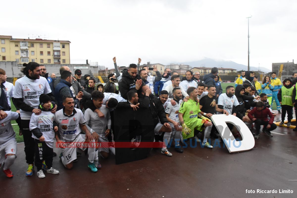 Questa è la mia Torre, questa terra strana che oggi ha riempito la tribuna, con code all’ingresso che da anni non si vedevano. Ma tutto continua negli spogliatoi, quando tutto il gruppo di cui Fabiano s’era sempre inorgoglito, gli ha restituito la stima con secchi d’acqua addosso. Ragazzacci. Eccezionali.