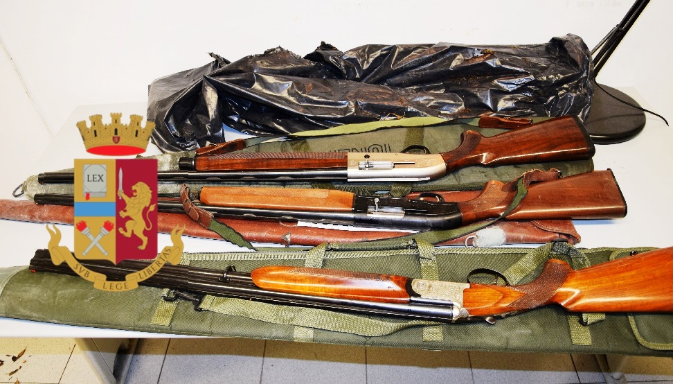 I poliziotti, unitamente agli agenti della Polizia Scientifica, dopo i rilievi tecnici, hanno rinvenuto all’interno dell’involucro tre fucili; dai controlli effettuati le armi sono risultate oggetto di furto, avvenuto nella giornata di ieri.