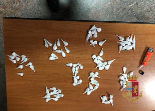 In tale frangente, gli agenti hanno deciso di fermarlo per procedere alla sua identificazione e al relativo controllo. Nel corso della perquisizione sono state rinvenute n.4 bustine di cellophane trasparente termosaldate contenenti polvere di colore bianco, mentre al di sotto della sella, in un vano appositamente ricavato, è stato rinvenuto un finto accendino al cui interno erano celate altre 5 bustine della stessa specie. In ragione di quanto emerso nelle fasi di appostamento e osservazione, convinti dell’esistenza di un’attività di spaccio di più ampio respiro, i poliziotti hanno proceduto anche a una perquisizione domiciliare che ha dato esito positivo. Infatti, all’interno dell’appartamento, in una busta di cellophane trasparente, sono state rinvenute altre 91 bustine della medesima tipologia e contenuto. All’esito degli accertamenti di rito, la sostanza stupefacente di tipo cocaina è stata quantificata in totale in gr.50 circa.