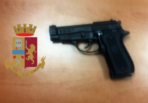 I due sono stati bloccati e arrestati. Nel borsello del 33enne i poliziotti hanno rinvenuto e sequestrato la pistola, una replica in metallo priva del tappo rosso, impugnata poco prima dal 17enne mentre minacciava la giovane.