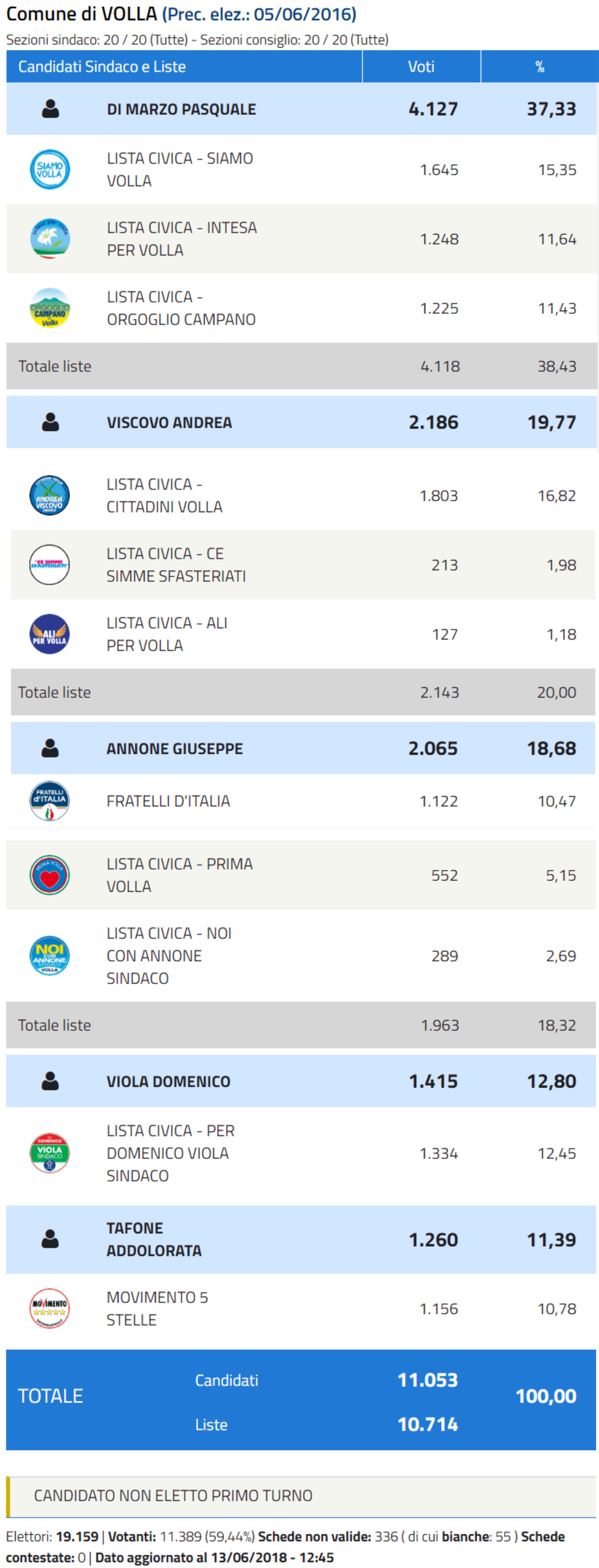 Con la pubblicazione di tutti i dati vi è inoltre la conferma che CittadiniXVolla è la forza politica più votata. Un segnale che dovrebbe dare grande fiducia a Viscovo che conserva questo primato.