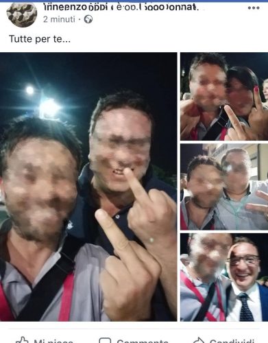La risposta dei sostenitori del neo sindaco Di Marzo non è delle più eleganti: un dito medio “Tutto per te” …