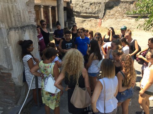 In mattinata la comitiva si è recata alla Villa di Poppea, dove è stata ricevuta dall’assessore al Marketing Territoriale, Floriana Vaccaro, insieme al presidente dell’Archeoclub “Sez. Mario Prosperi”, prof.ssa Mirella Azzurro, e dalla prof.ssa Rita Aliberti, che ha fatto da guida alla scoperta dei tesori e della storia dell’antica Oplontis.
