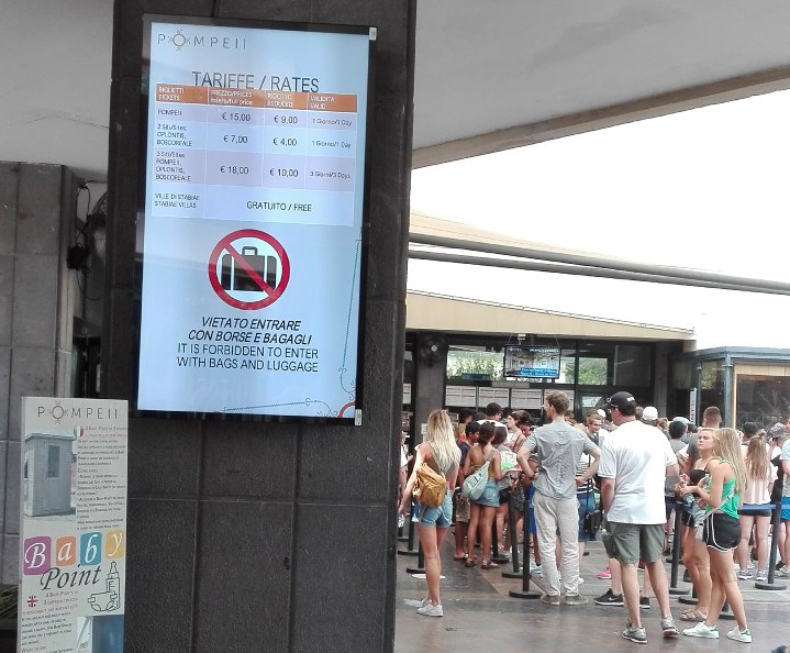 Pompei sempre più al servizio dei visitatori. In questi giorni, nel Parco Archeologico, sono stati attivati 13 monitor, in corrispondenza degli ingressi di Porta Marina, Piazza Esedra e Porta Anfiteatro, destinati alla diffusione di informazioni ed avvertenze utili alla visita.