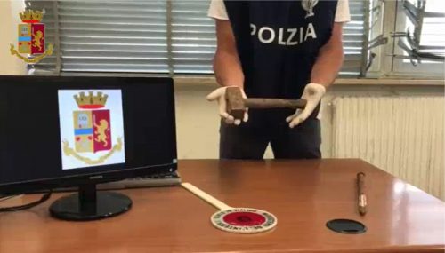 I poliziotti all’interno di un armadi, nell’abitazione dell’uomo hanno rinvenuto lo scalpello e la mazzuola che aveva impugnava poco prima per minacciare l’ex moglie.
