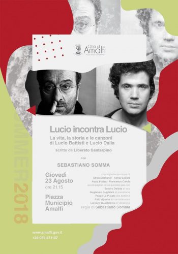 “Lucio Incontra Lucio. La vita, la storia e le canzoni di Lucio Battisti e Lucio Dalla” è in programma giovedì 23 Agosto alle ore 21:15 in Piazza Municipio ad Amalfi.